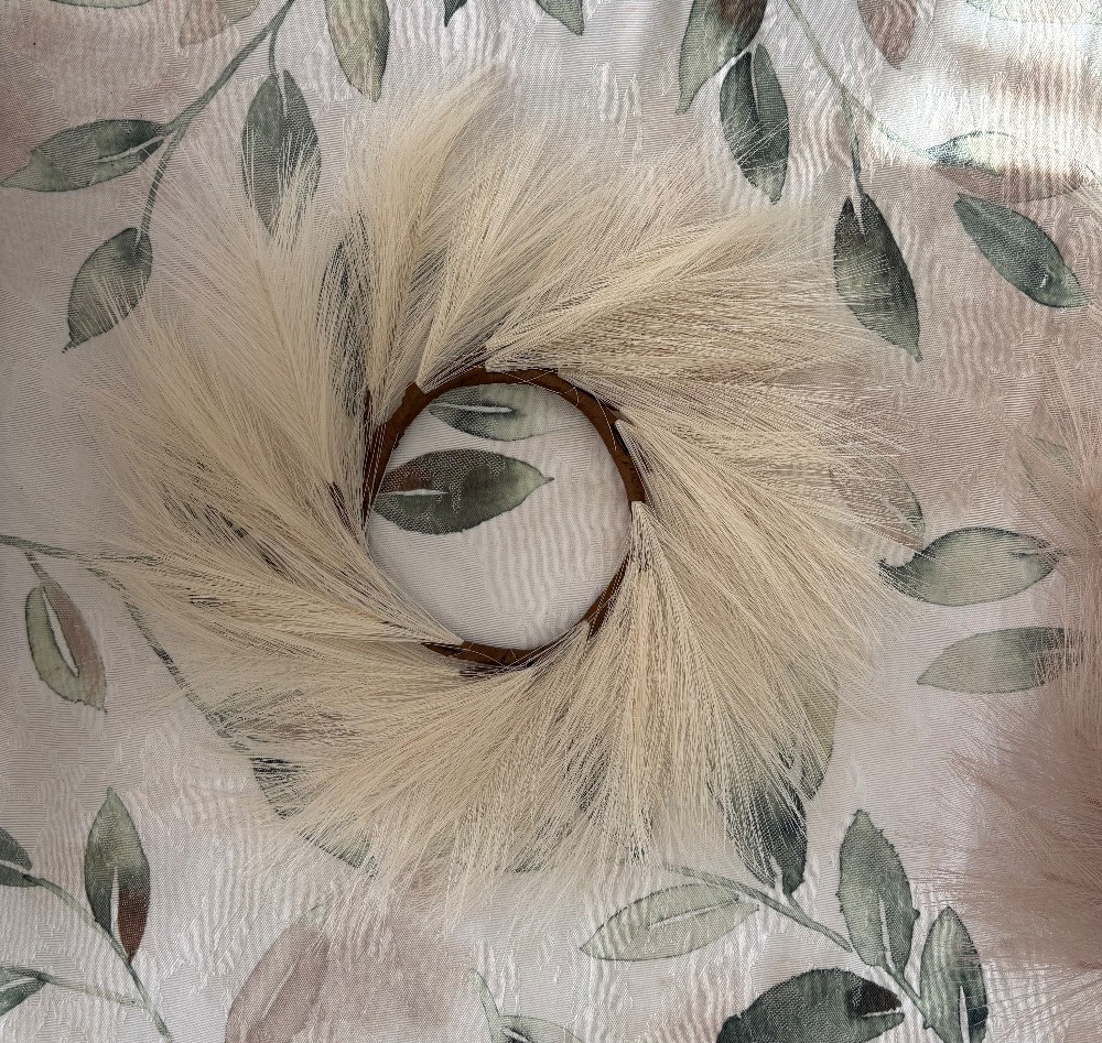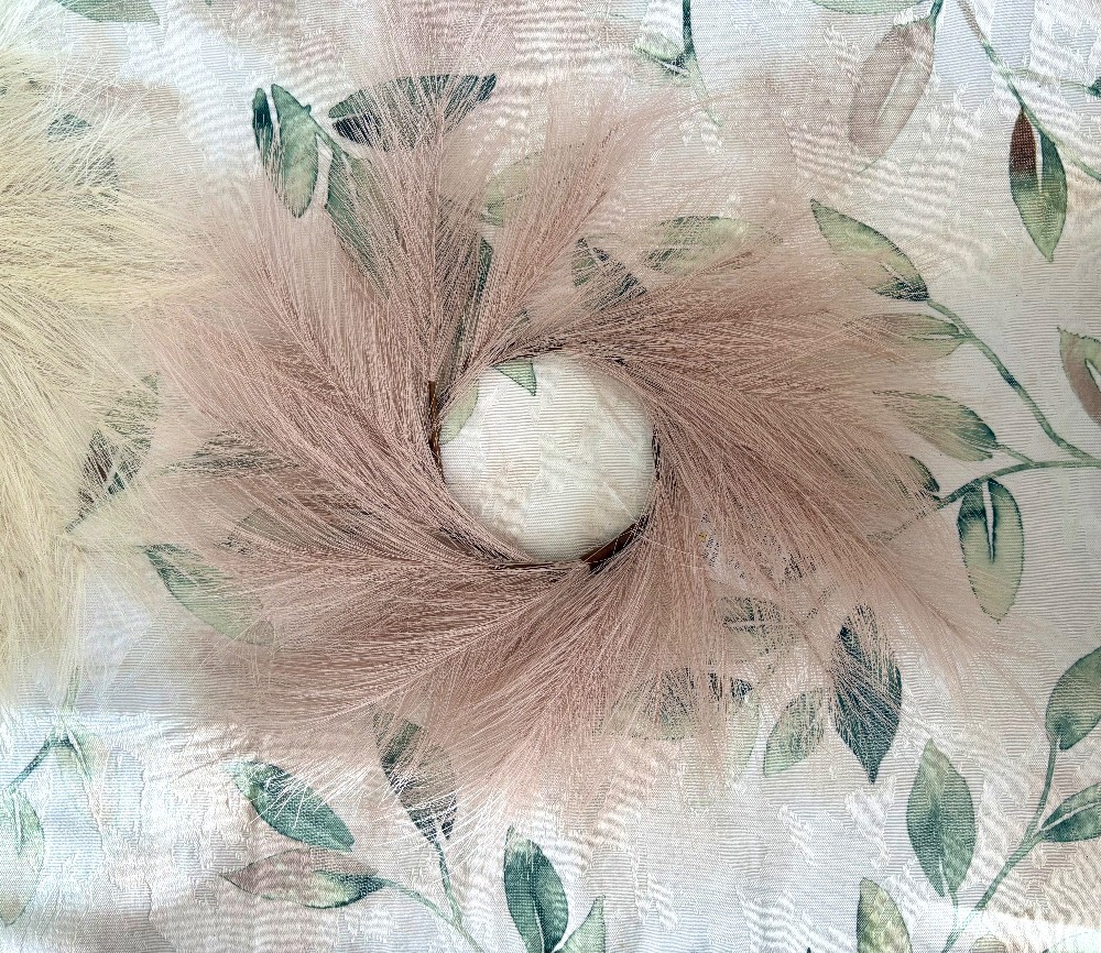 Brown base, feathery faux pampas grass bundles. Assorted shades,